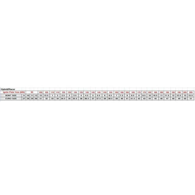 | Â Bont Size | 1 | 2 | 2.5 | 3 | 3.5 | 4 | 4.5 | 5 | 5.5 | 6 | 6.5 | 7 | 7.5 | 8 | 8.5 | 9 | 9.5 | 10 | 10.5 | 11 | 11.5 | 12 | 12.5 | 13 | 13.5 |