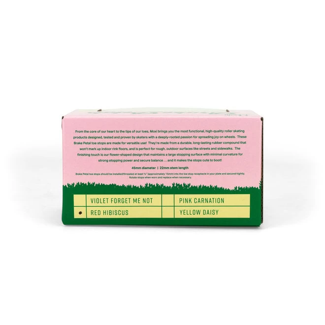 As with all of Moxi’s products, Moxi aims for the highest-quality. Their testers claim that the Brake Petals have lasted them through full seasons and promise surprise and delight when it comes to durability. Custom shaped for cuteness, these toe stops wear down evenly as you need to rotate them.