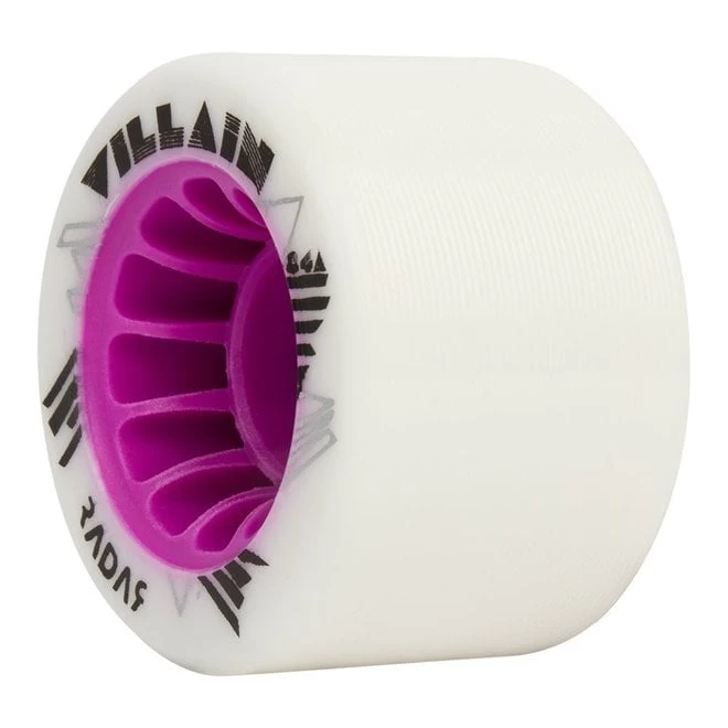 Like the Radar Bullet wheel, the Villain is built with the ‘Shark Hub’, providing more stiffness in the core of the wheel through convex fins running all the way to the edge of the wheel. This specific core gives your wheel a lot more roll and eliminates energy loss. What you skate is what you get. So there is your precision and roll, but you wanted more grip for that hard, slippery floor you skate on? The Villain got you covered. It has a tire of high rebound urethane gripping lovely on slick indoor surfaces.  If you don’t need all your 8 wheels to grip so much, you can perfectly combine the Villain Slim wheels with a set of Aura wheels. Or even Halo or other harder wheels.